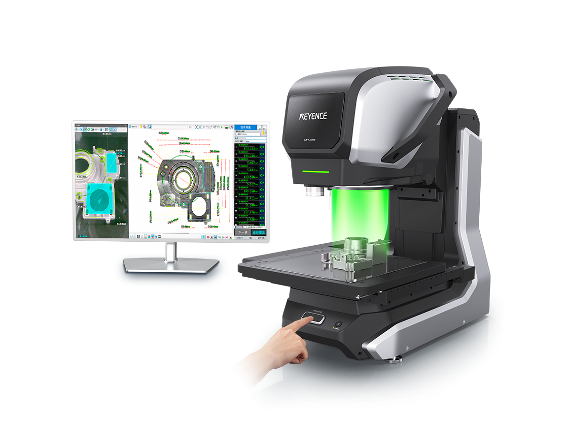全新图像尺寸测量仪、投影仪、工具显微镜,在载物台上放置目标物后,只需按下按钮简单操作即可实现高精度测量。无需目标物的严格定位,仅需数秒即可测量多个位置。利用自动对焦实现无偏差测量和尺寸测量的自动化,缩短工时。